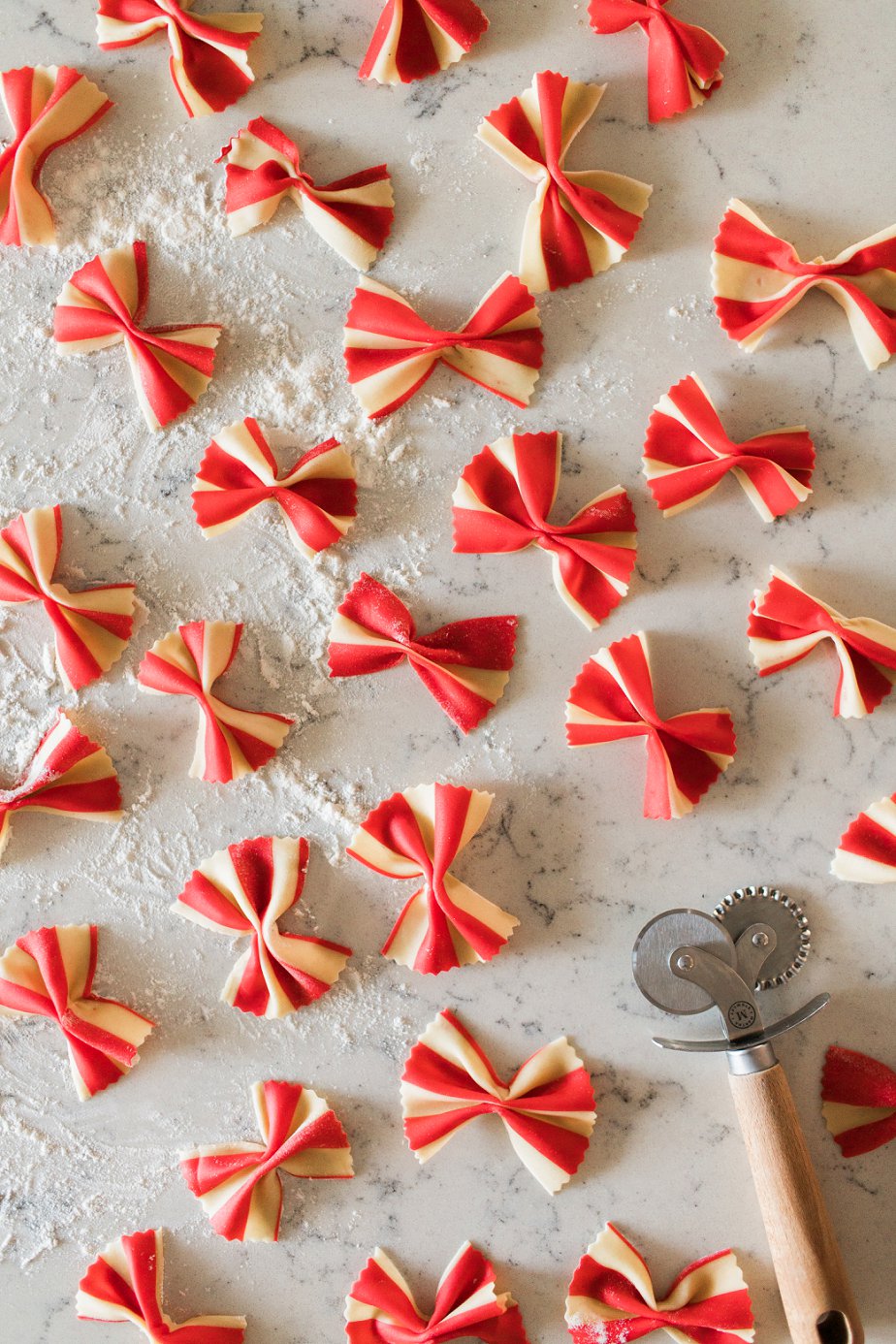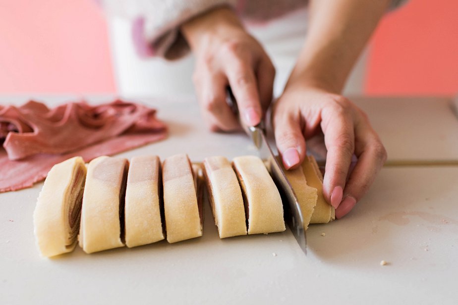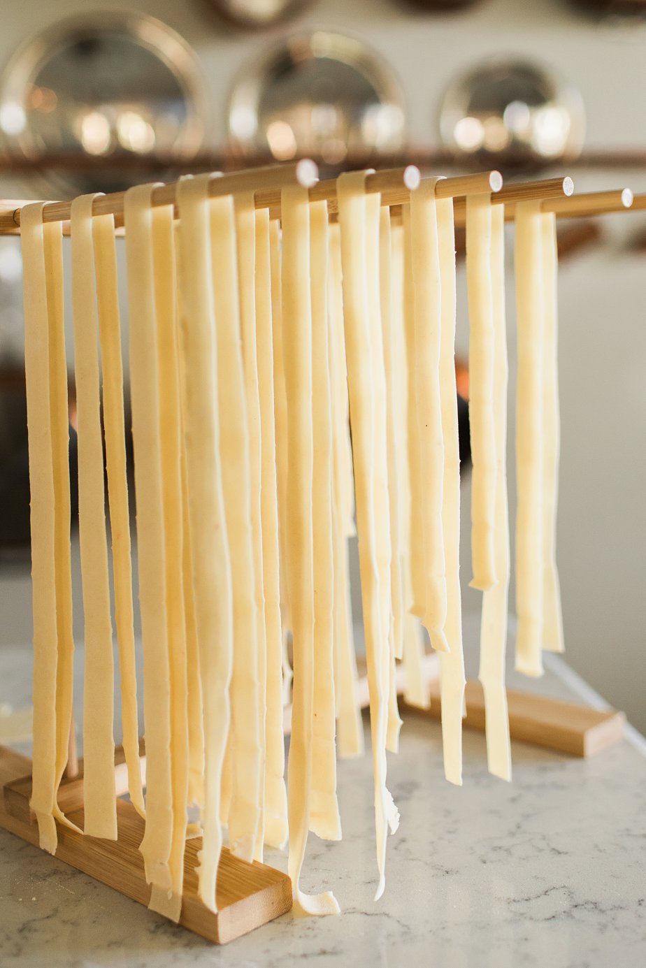 - If you are cutting pasta for the first time, try Pappardelle! To me, it’s the easiest shape and doesn’t require an extra cutter or machine attachment. Flour the top of the pasta sheet and roll loosely (like the photo above) before cutting into wide strips using a sharp knife. Gently unroll each Pappardella strand and hang or lay flat on a floured surface to dry.
