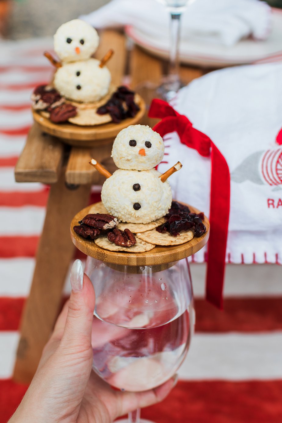 - Repeat for all four snowmen and refrigerate until ready to serve with charcuterie pairings.