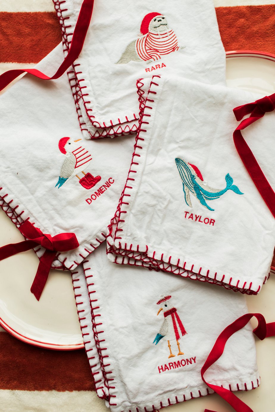 I made these personalized embroidered napkins for the family this year, and I LOVE them. They also make great gifts, and I’m certain we will cherish them forever in the collection. I found the coastal animals embroidery files on this Etsy shop.